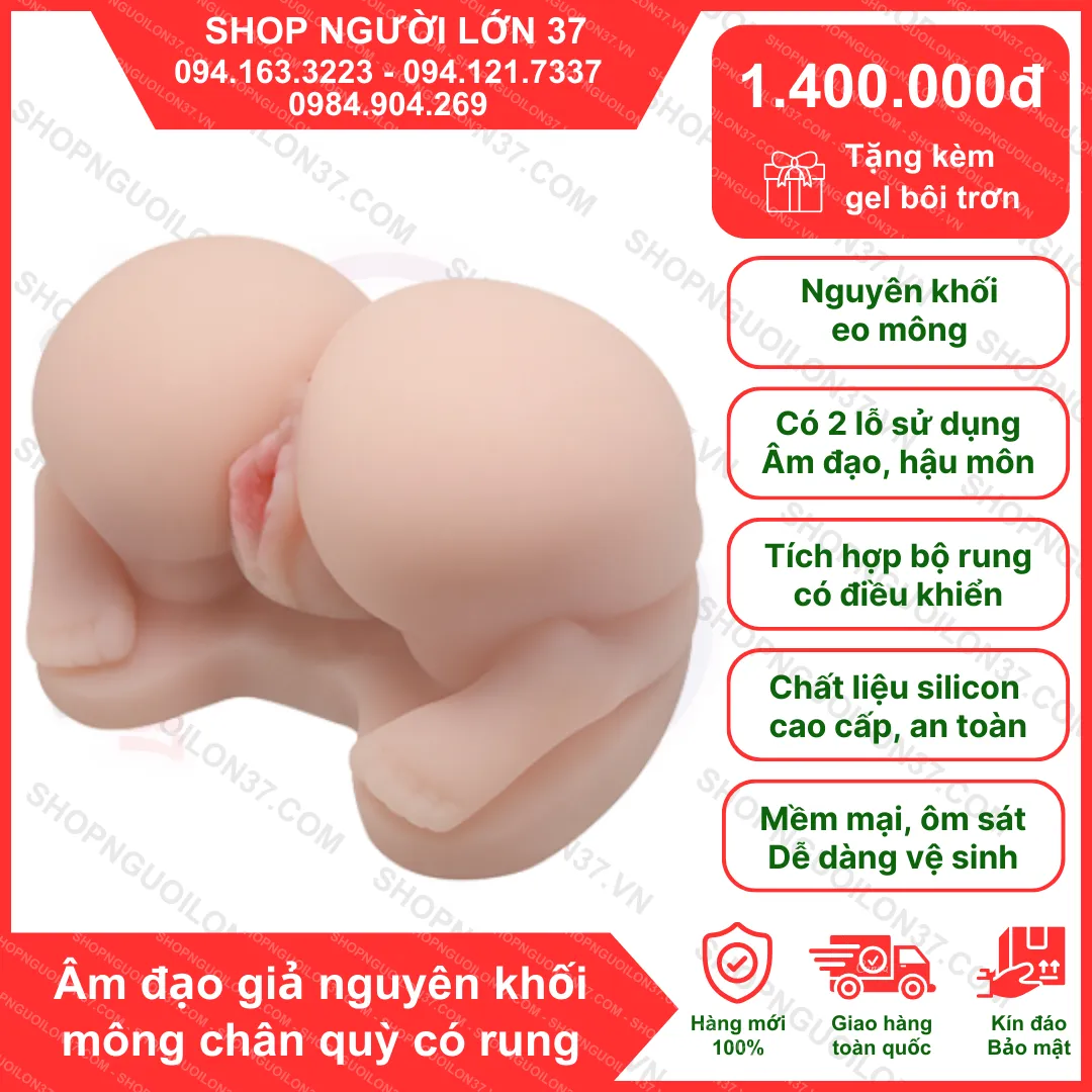 Âm đạo giả dạng mông chổng cao cấp – Silicone mềm bền, kèm 2 trứng rung