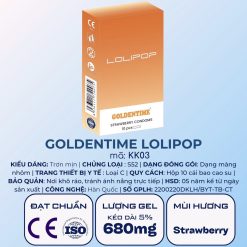 ✪ Tên sản phẩm: Bao cao su Siêu mỏng GOLDENTIME Lolipop thiết kế nút thắt, kéo dài thời gian hương dâu size 52mm