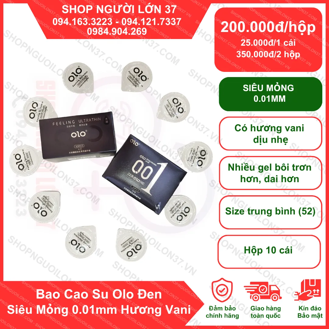 Bao Cao Su Olo Đen Siêu Mỏng 0.01mm Hương Vani