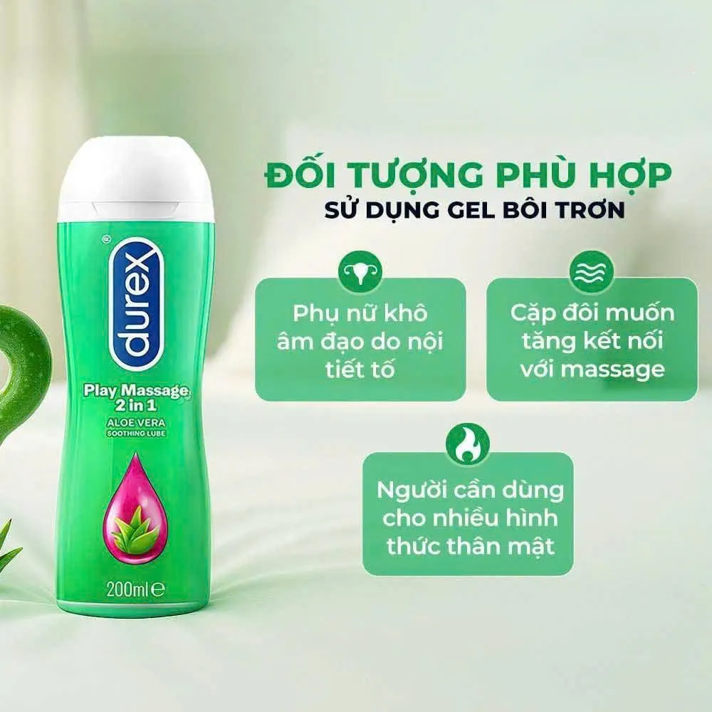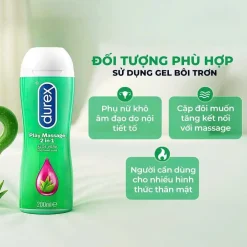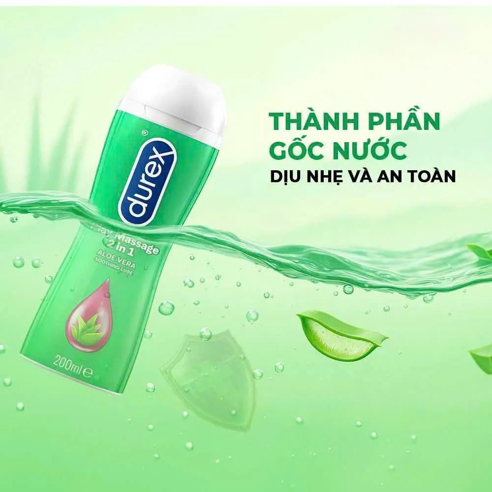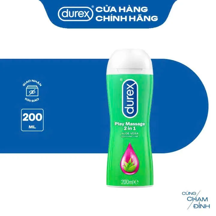 - Gel Bôi Trơn Durex Play Massage 200ml thuần gốc nước, bôi trơn nhẹ nhàng với tinh chất lô hội.