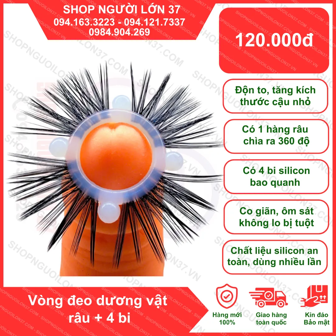 - Tên sản phẩm: Vòng đeo dương vật râu 4 bi 1 tầng silicon co giãn